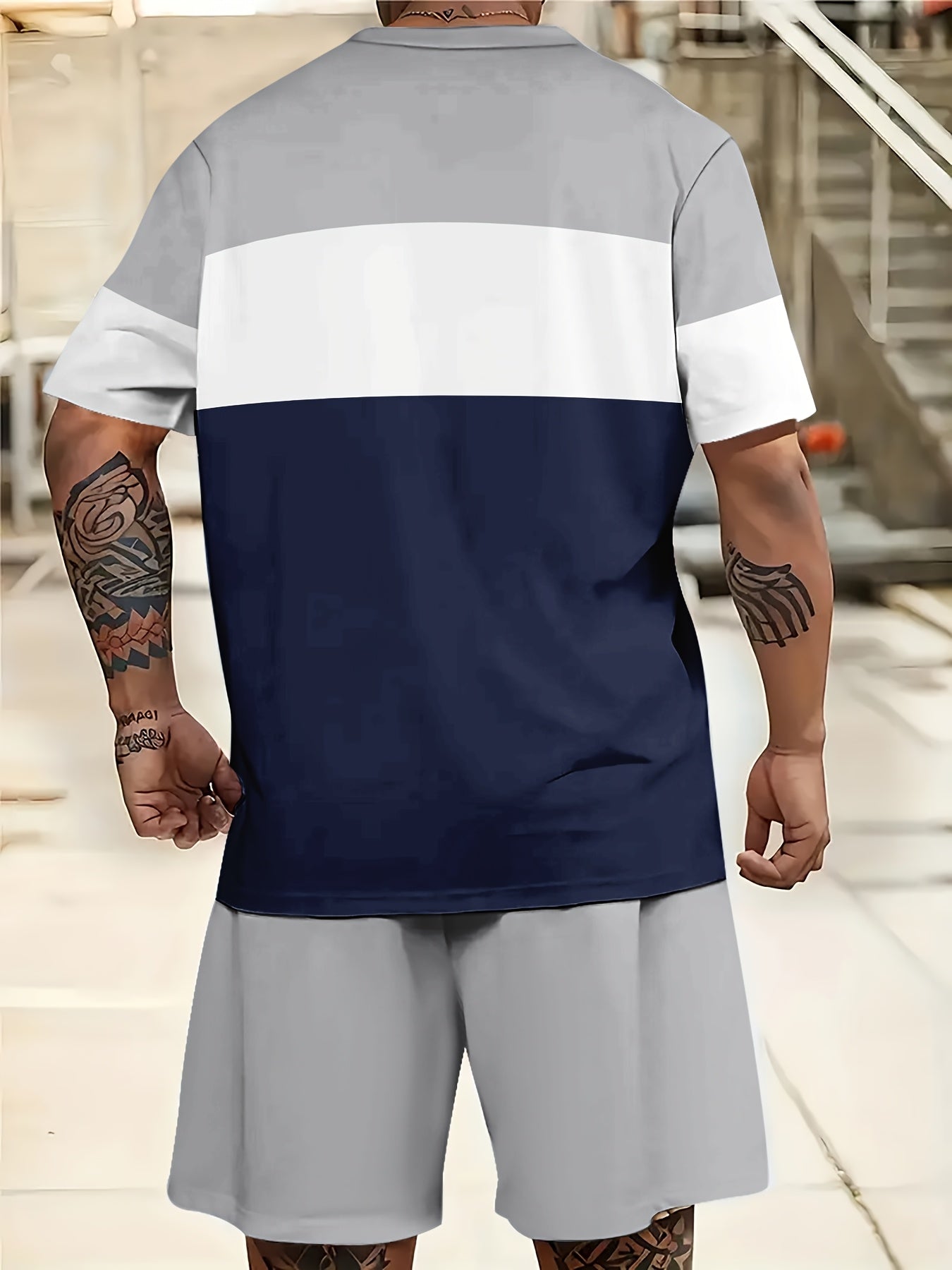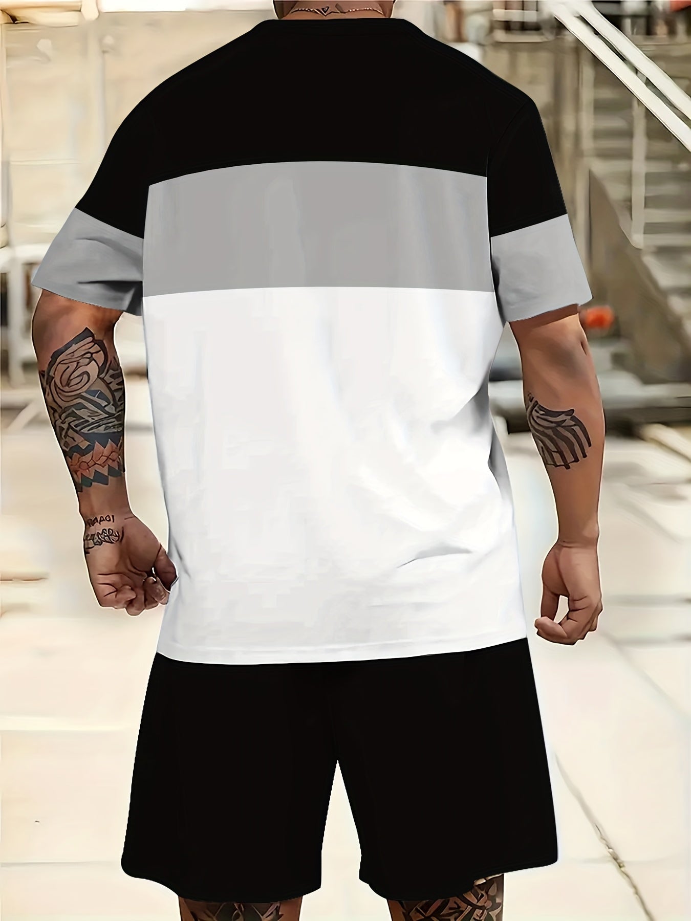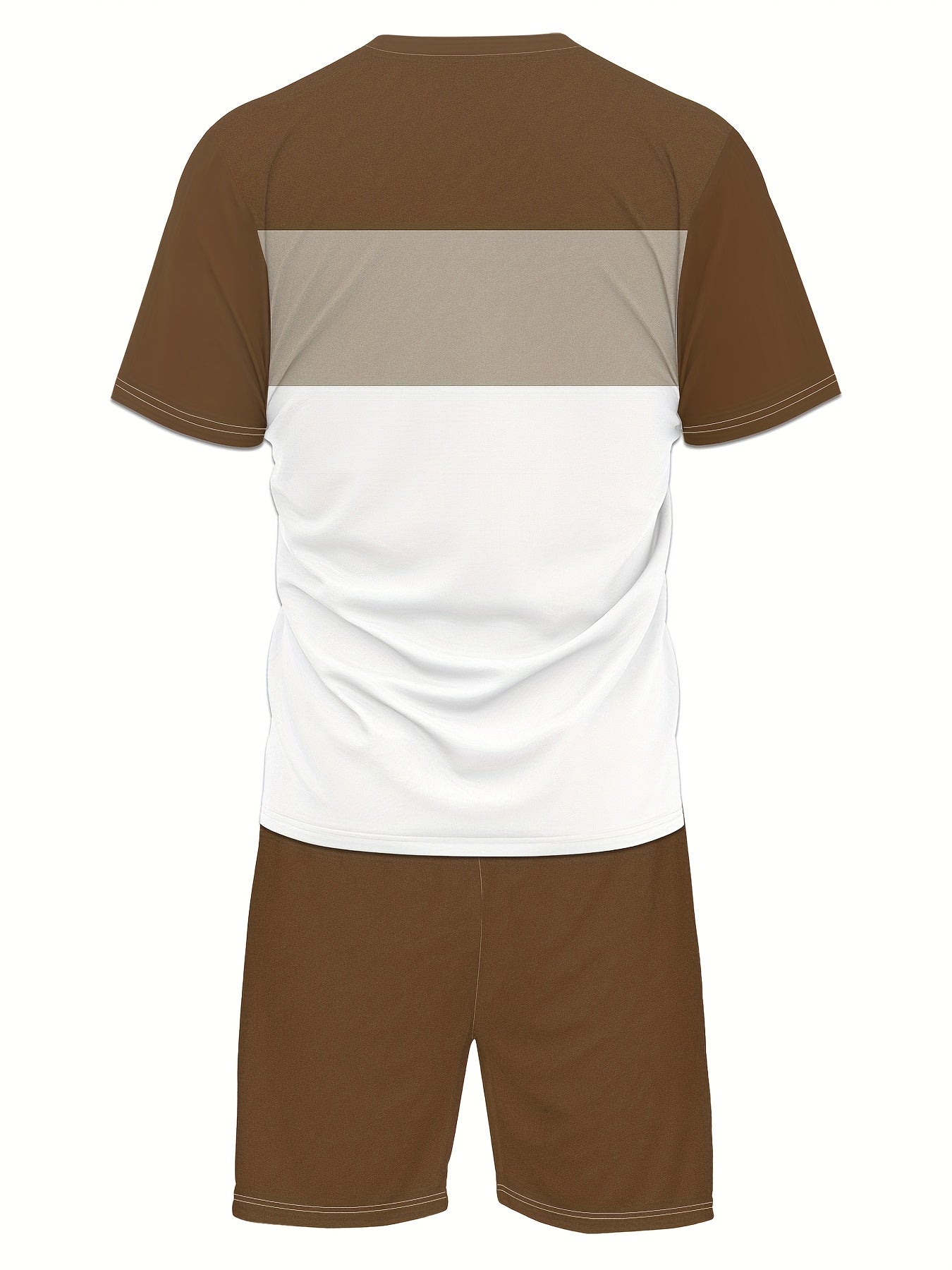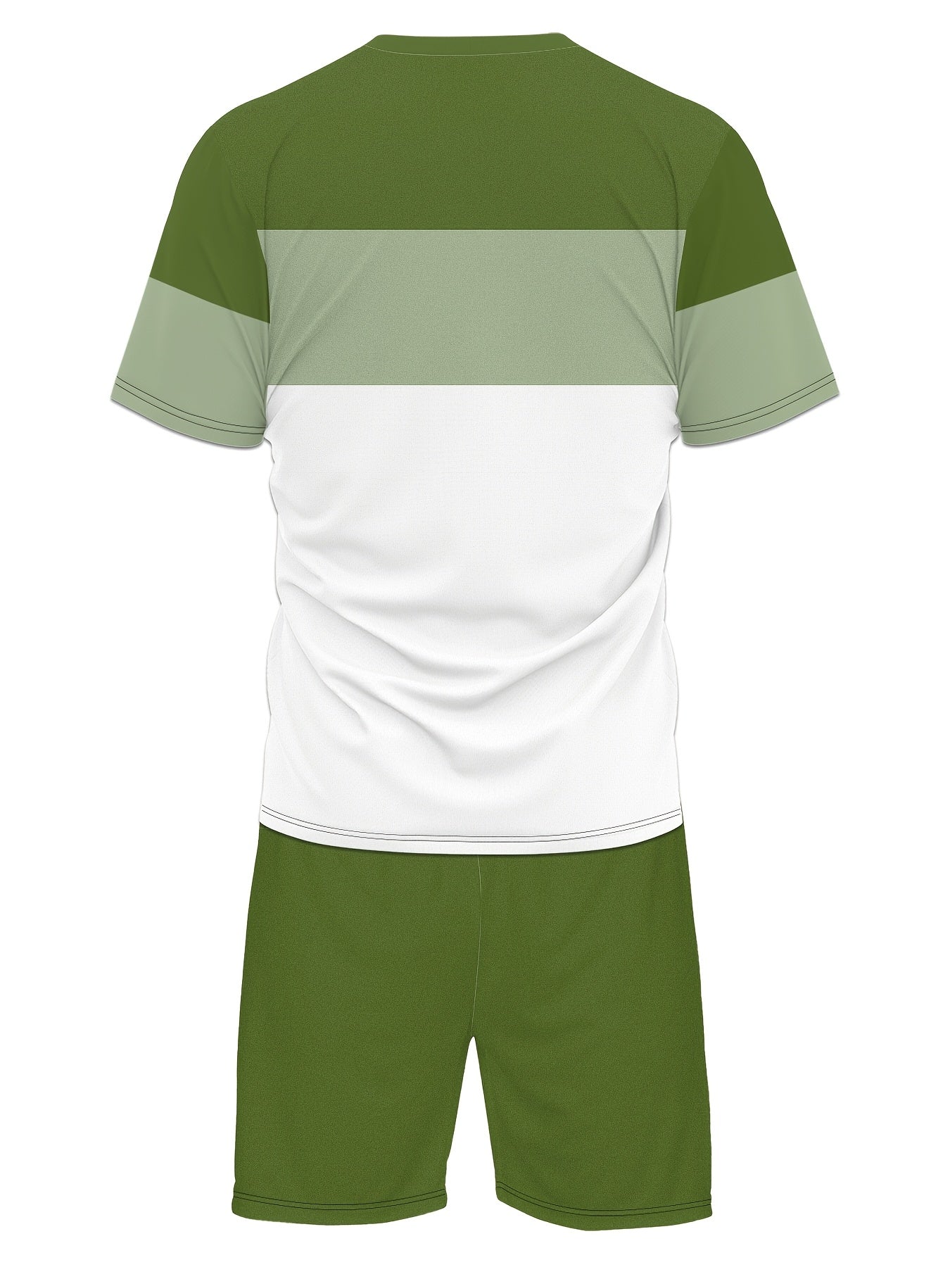 Men's Casual Summer 3D Print T-Shirt & Shorts Set - Olive Green