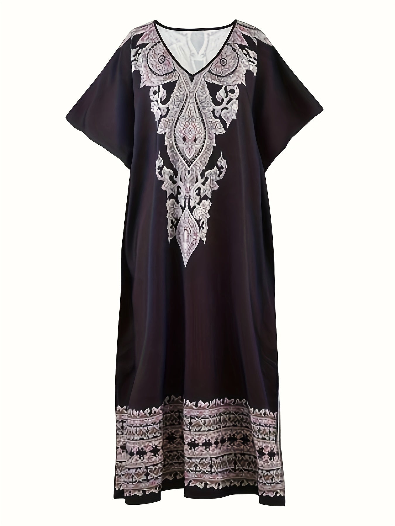 Women's Bohemian Floral Abaya Kaftan - V-Neck Batwing Sleeves