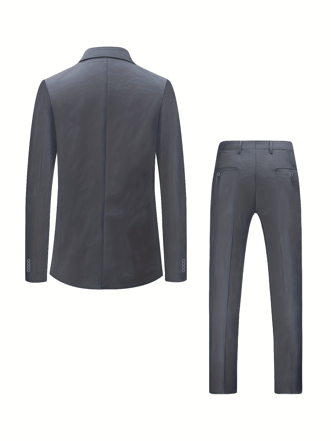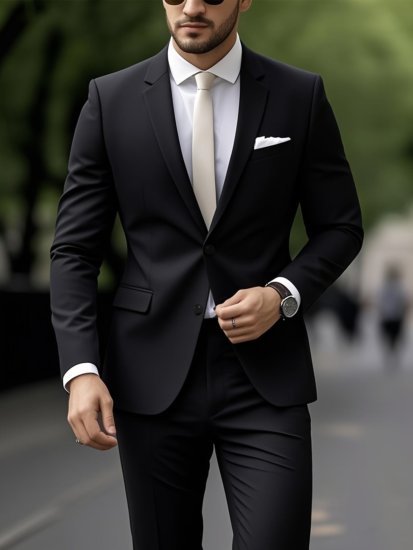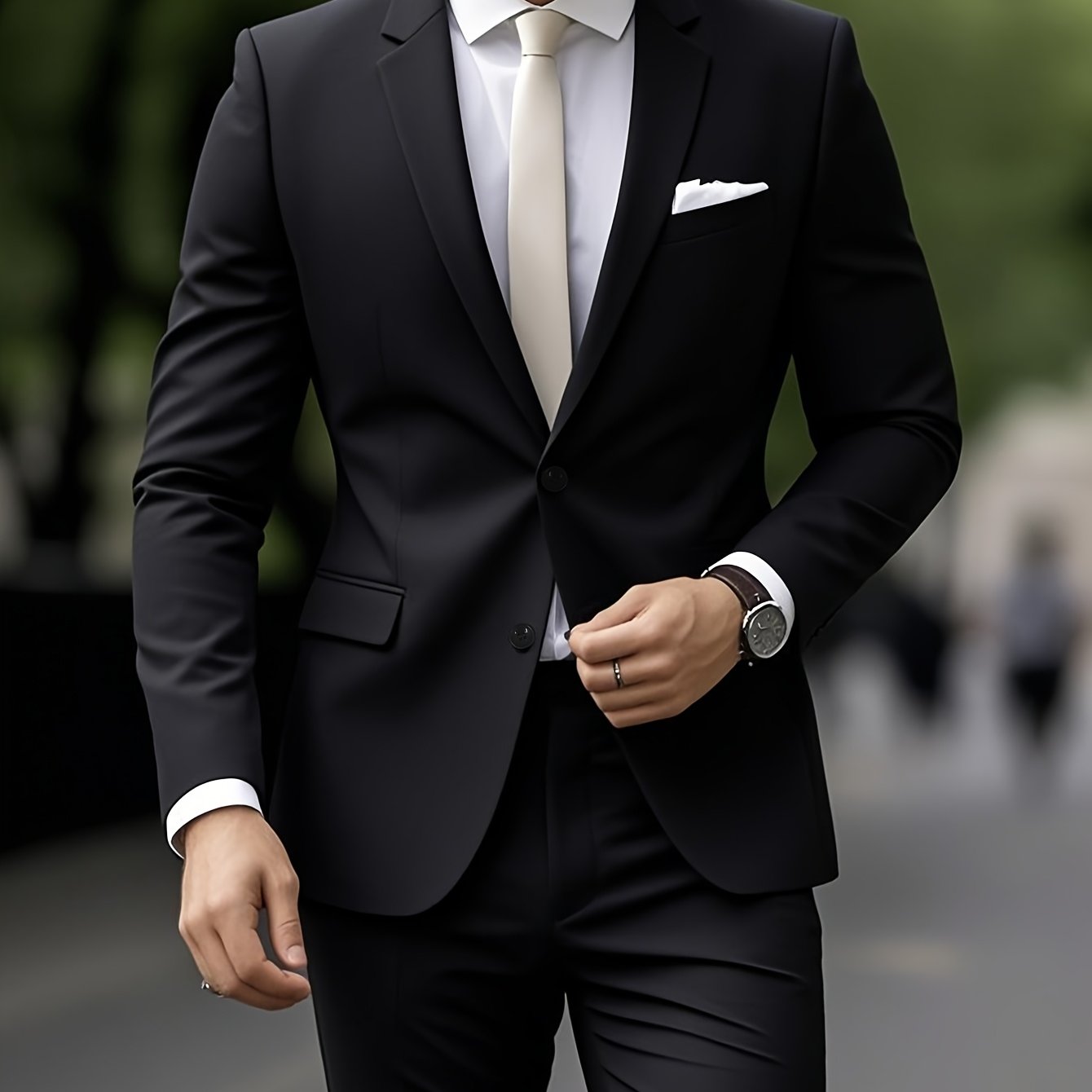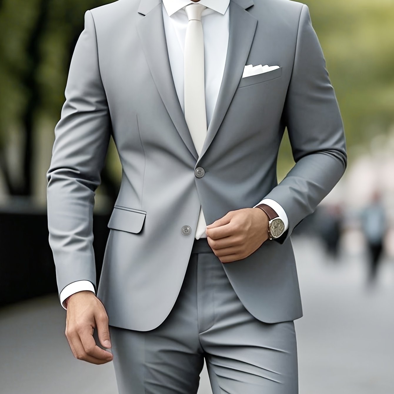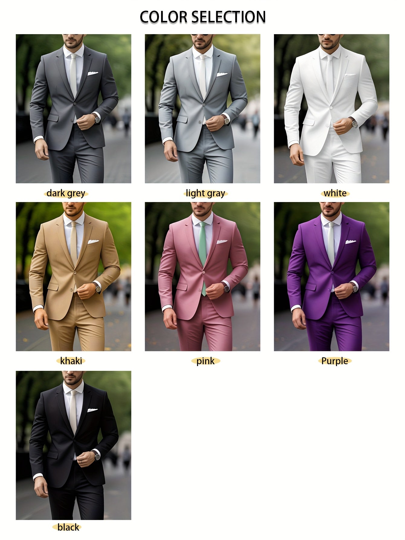 Men's Classic Business Suit - Solid Color Jacket & Unhemmed Trouser