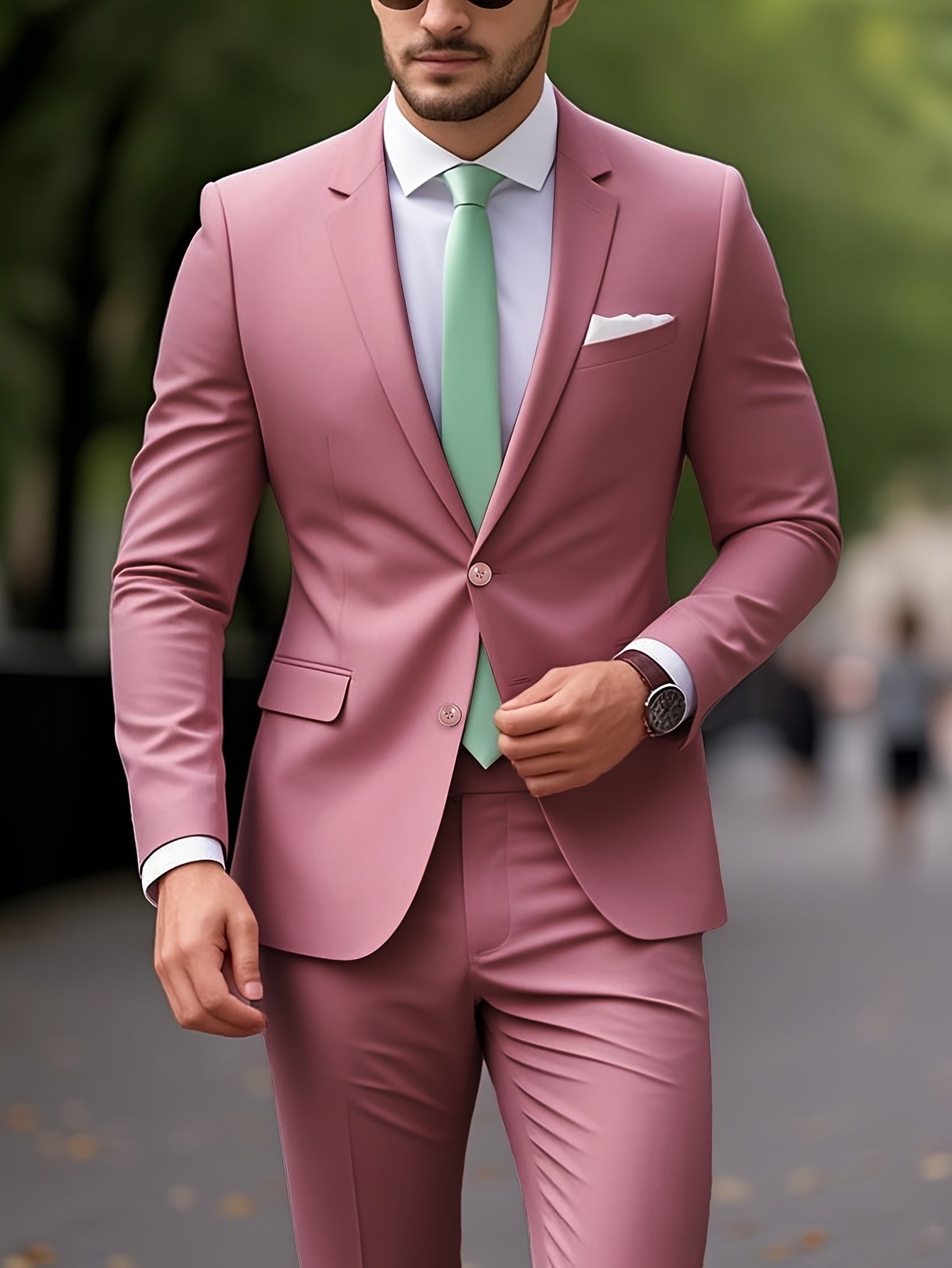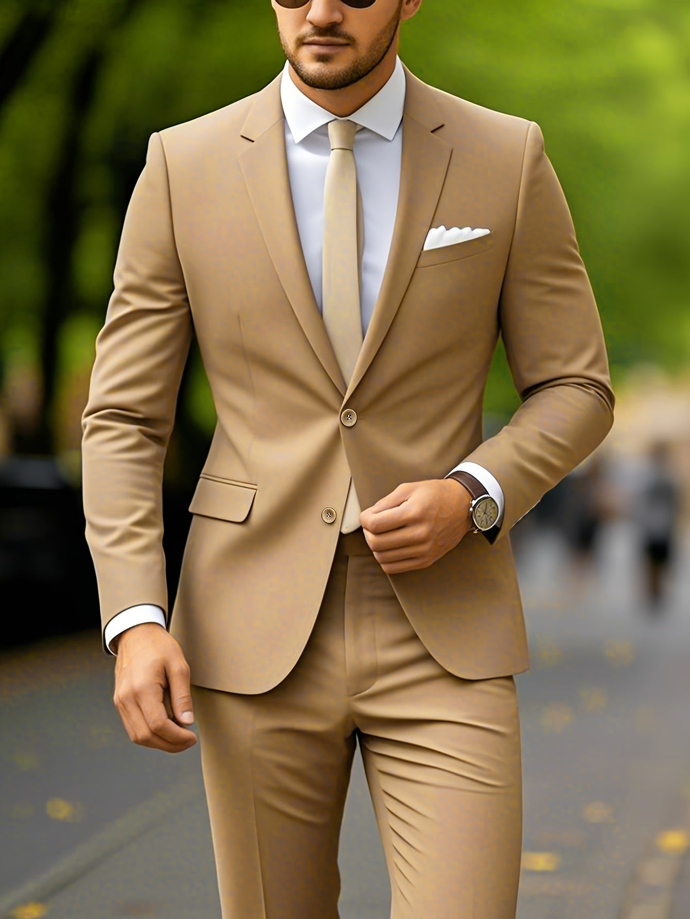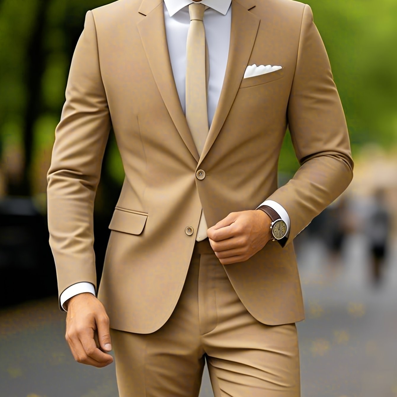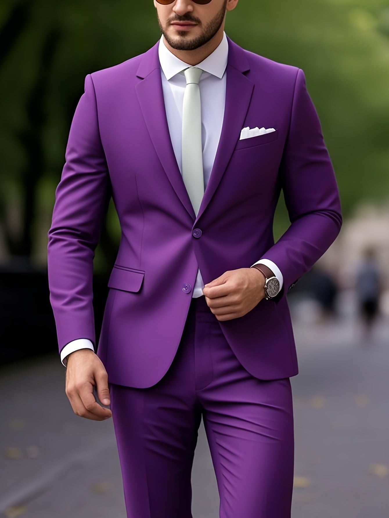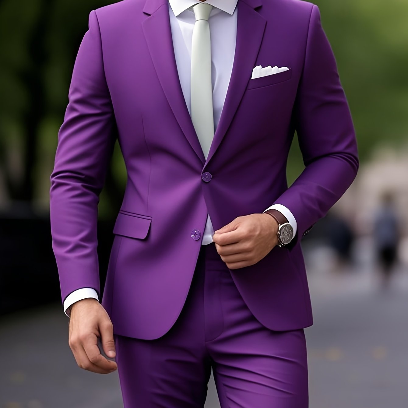 Men's Classic Business Suit - Solid Color Jacket & Unhemmed Trouser