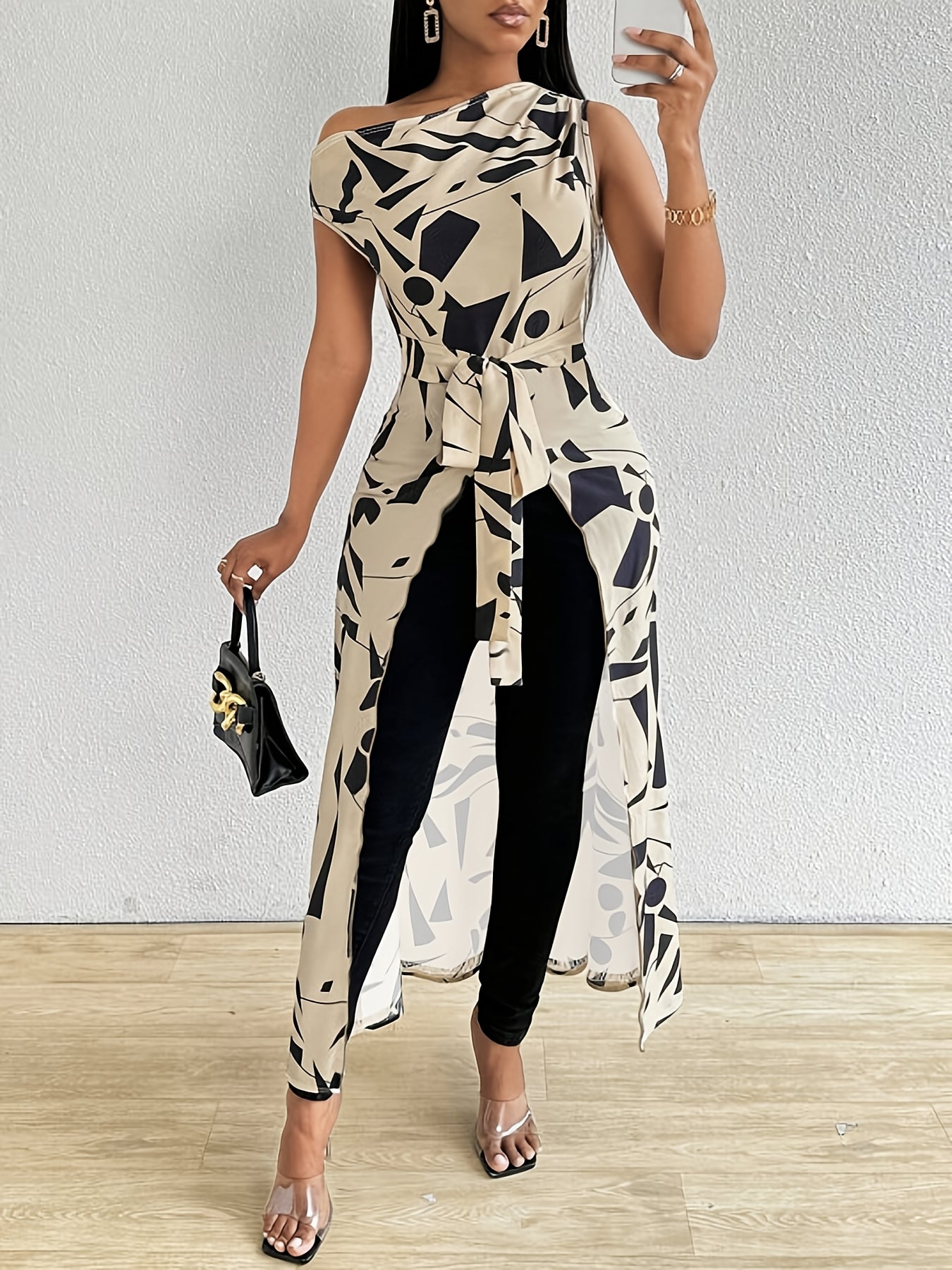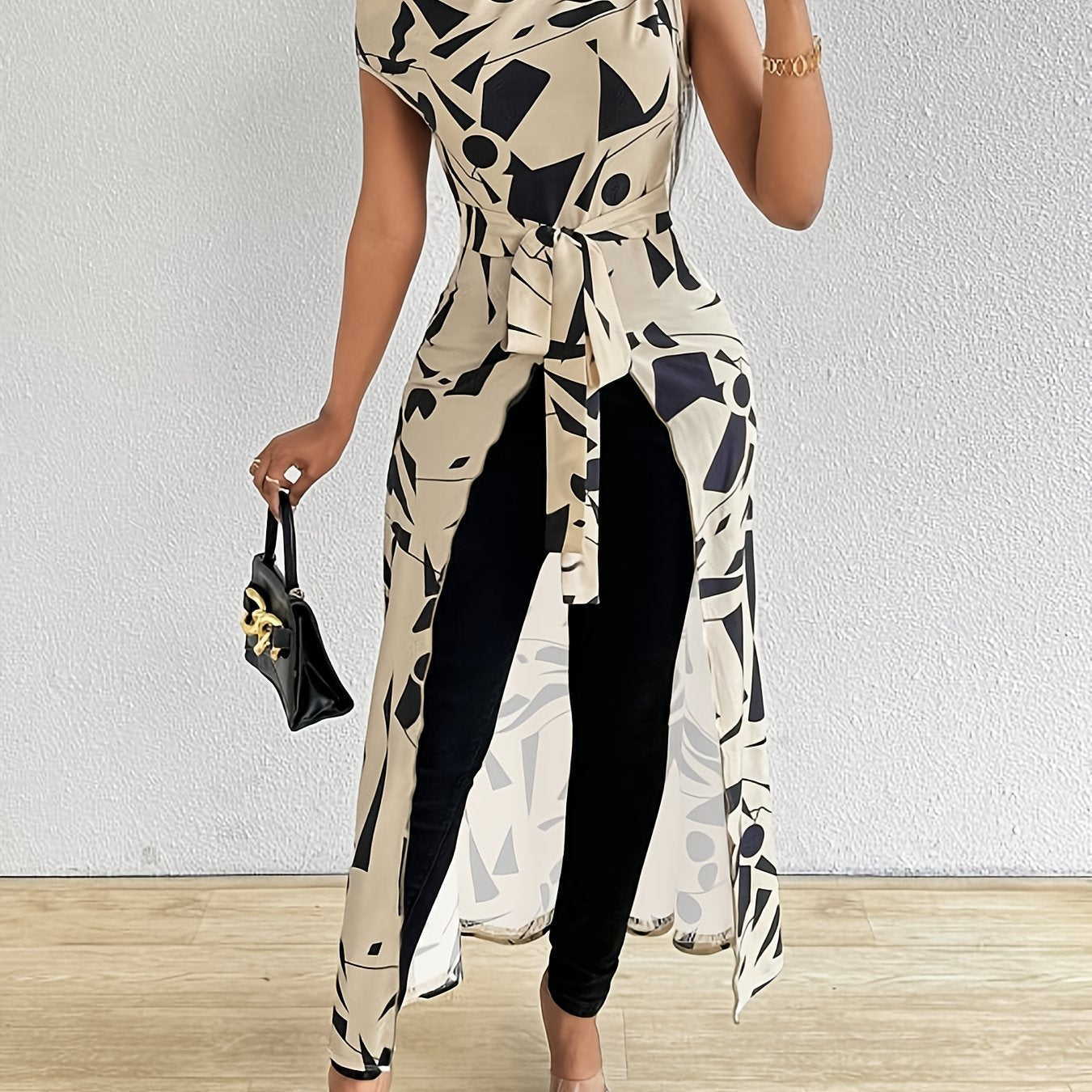 Stylish Women's Long T-Shirt - Versatile Geometric Pattern Print