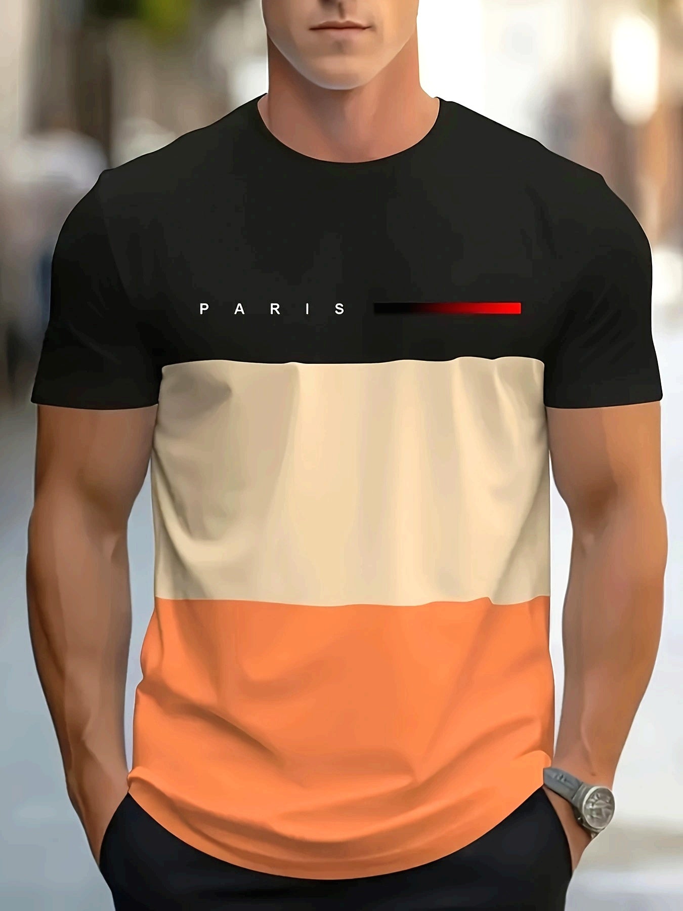 Men's 'PARIS' Stripe Print Crew Neck T-Shirt - Stylish Casual Tee