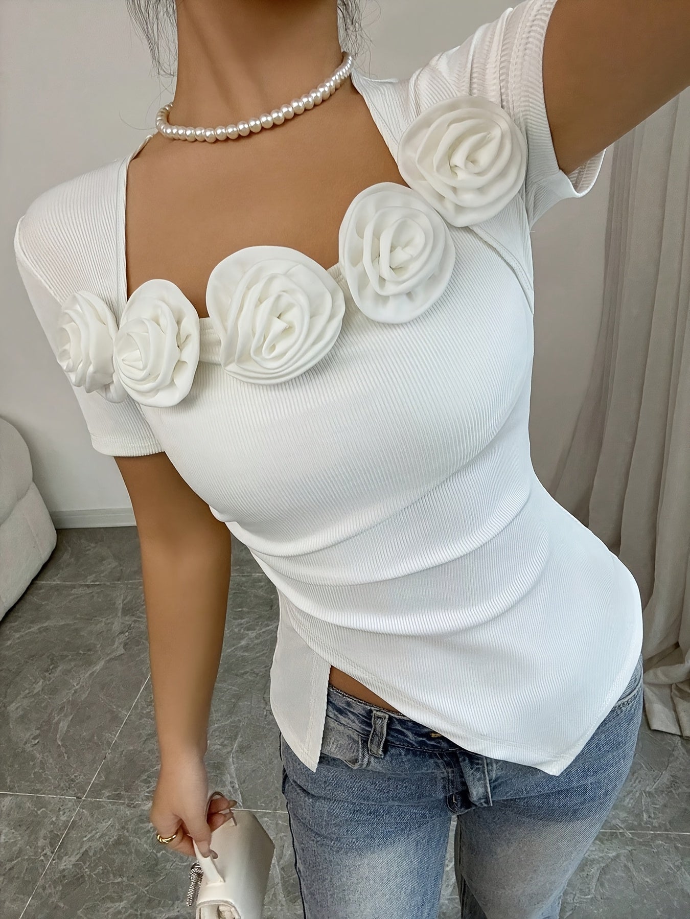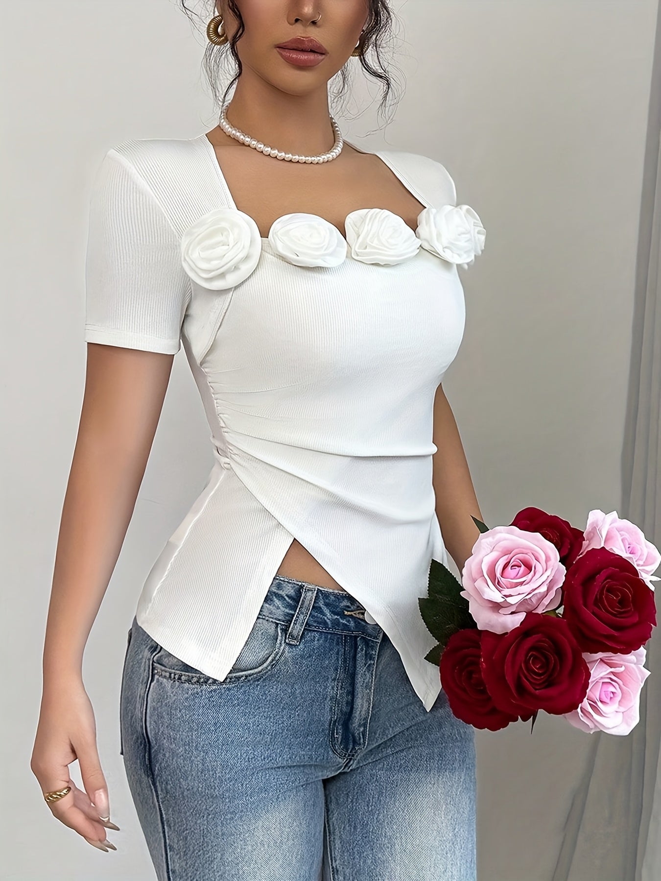Elegant Asymmetrical Short Sleeve T-Shirt - Summer Casual for Women