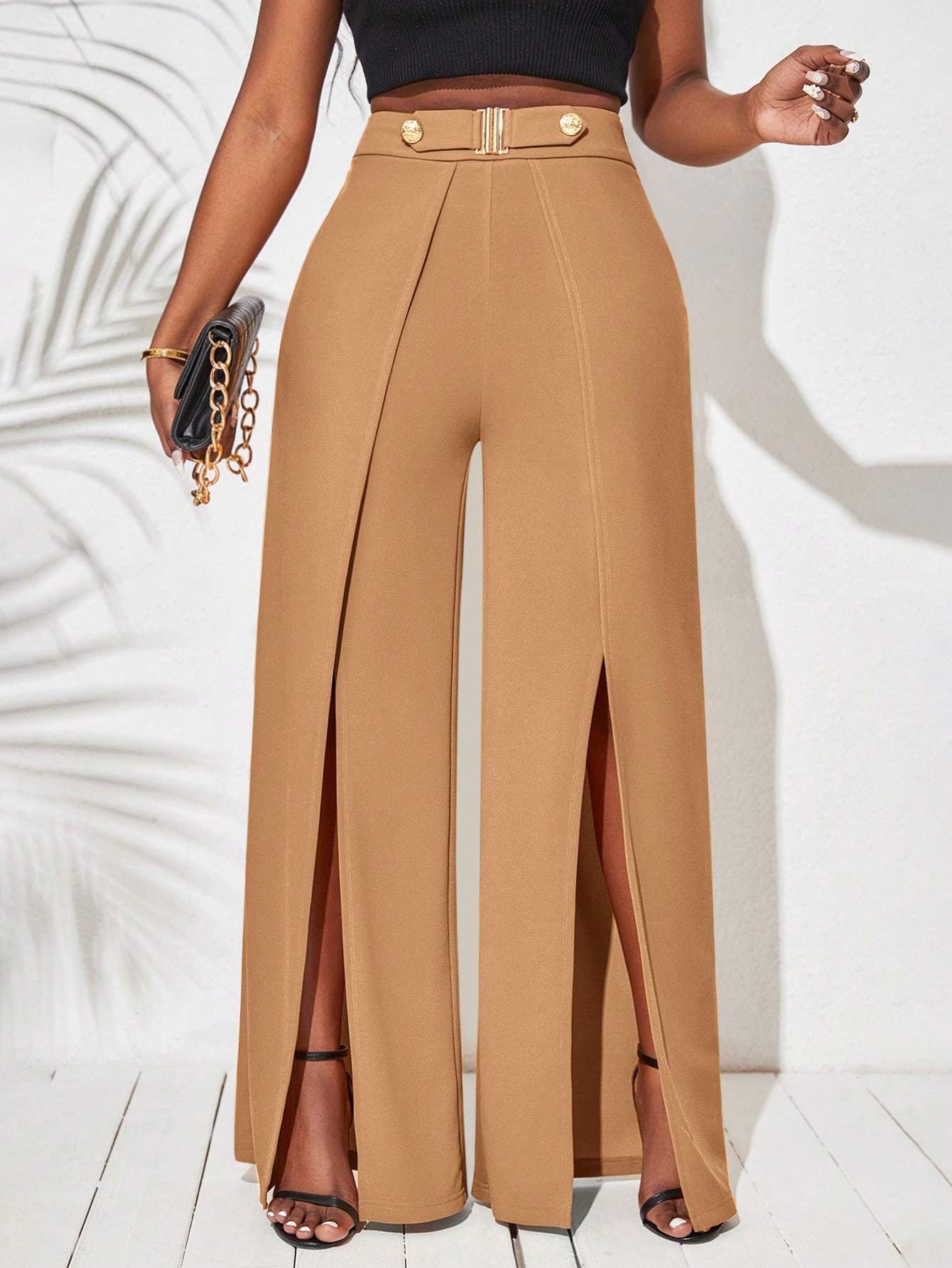 - Designed for a flattering high-waist fit and wide-leg silhouette