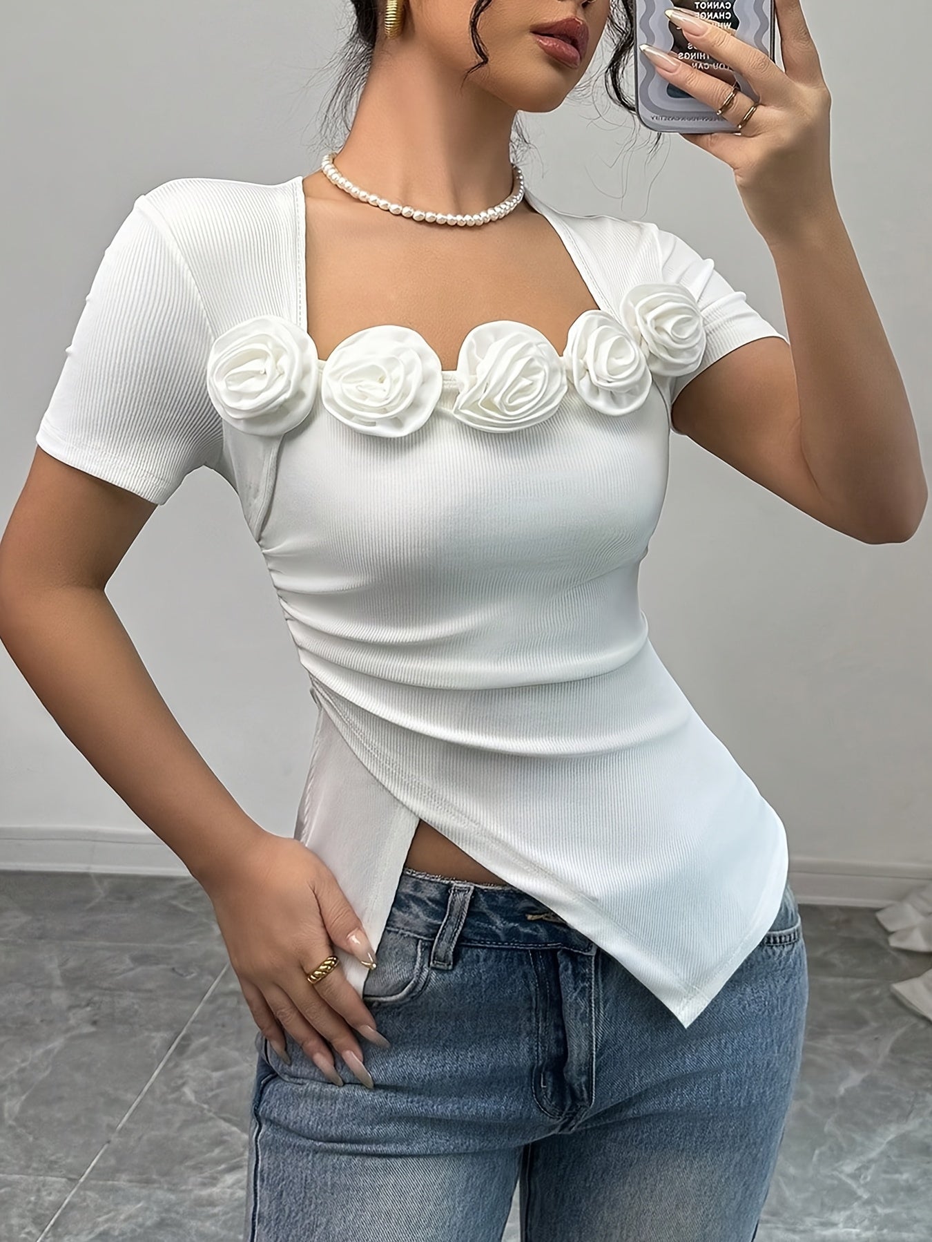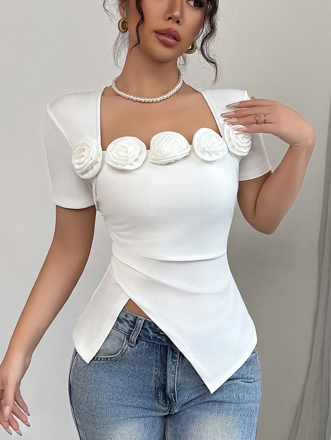 Introducing the Women's Elegant Short Sleeve Ruffled Blouse, a perfect blend of style and comfort for the summer season. Designed with a semi-sheer finish and a sophisticated square neck, this top adds a touch of elegance to your weekend casual outings. Made from 95% polyester, it combines breathability with a flattering fit.