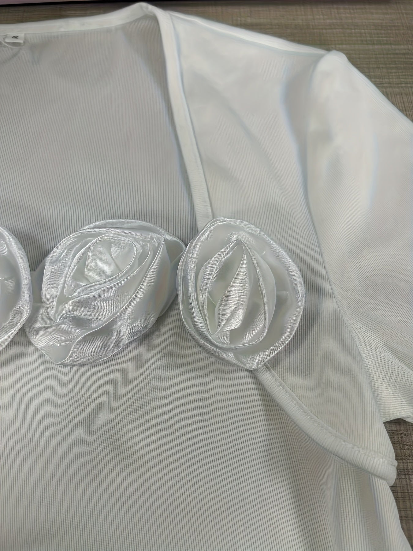 Women's Elegant Short Sleeve Ruffled Blouse - Semi-Sheer Summer Top