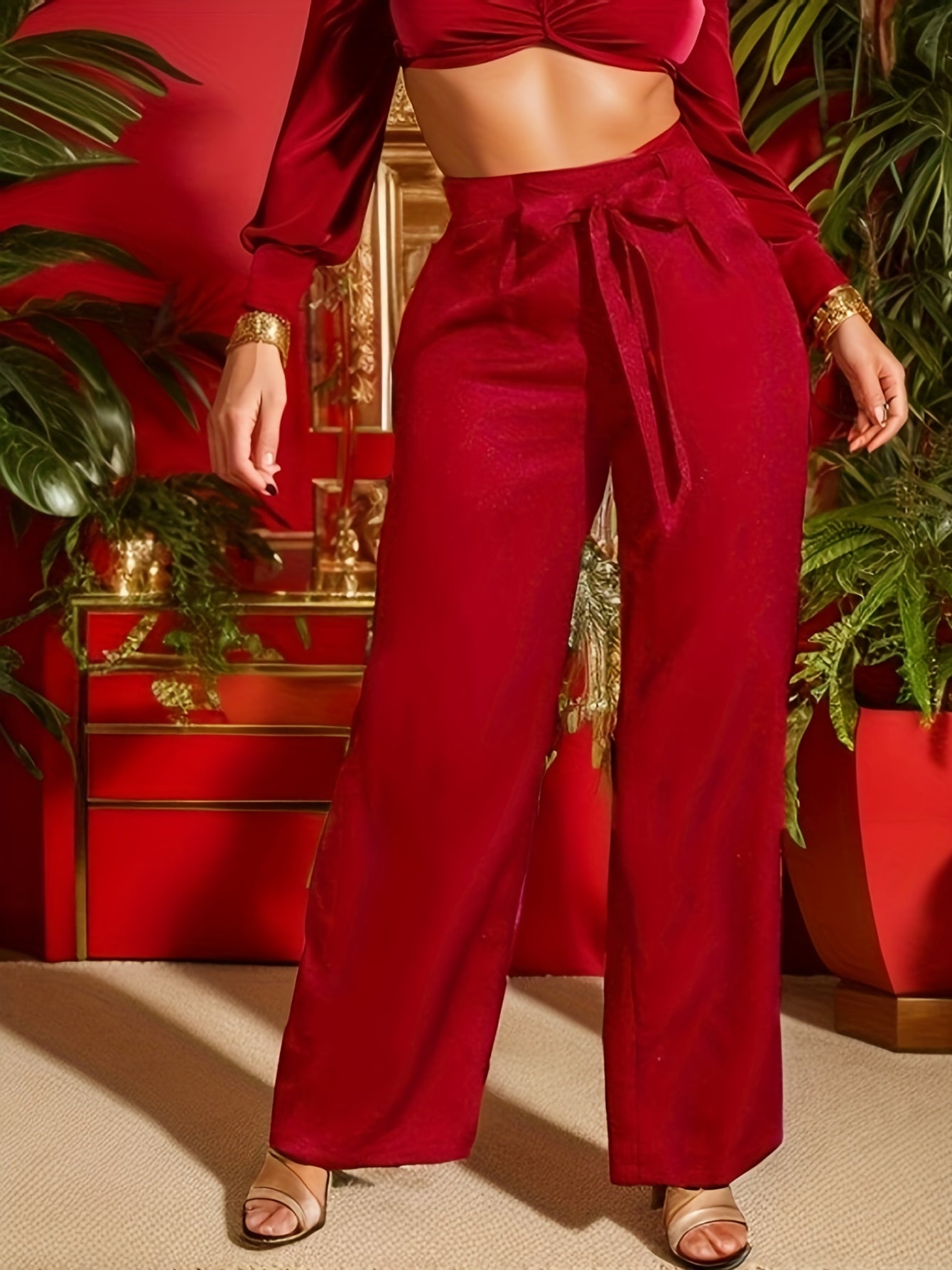 Elevate your style with our Solid Bow Front Straight Leg Pants, designed for the modern woman who appreciates elegance and versatility. These pants are not just a fashion statement; they are an expression of timeless style that can seamlessly transition from day to night. Perfect for any occasion, pair them with your favorite tops for a chic, put-together look that will turn heads and make you feel confident.