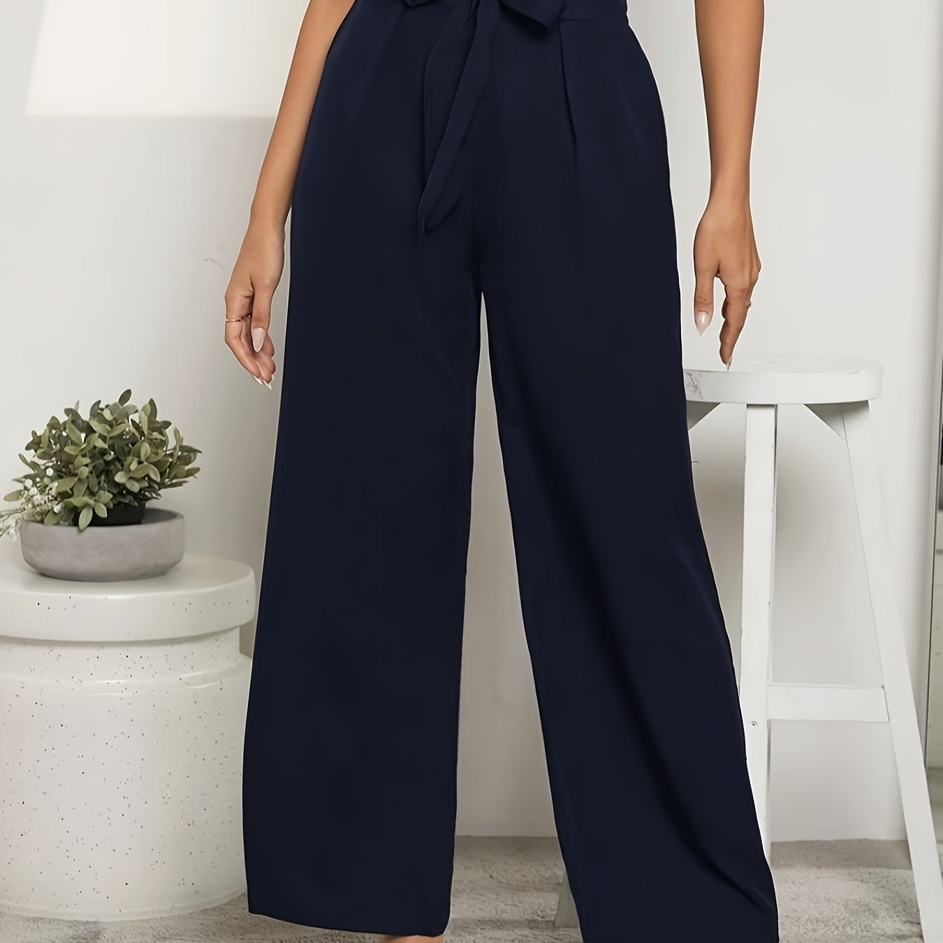 Introducing our Solid Bow Front Straight Leg Pants, a sophisticated addition to any wardrobe. Crafted from 100% polyester, these high-waisted, vintage-inspired pants combine elegance with comfort, making them perfect for all-season wear. The unique front bow detail adds a touch of femininity, while the wide-leg design flatters all body types.
