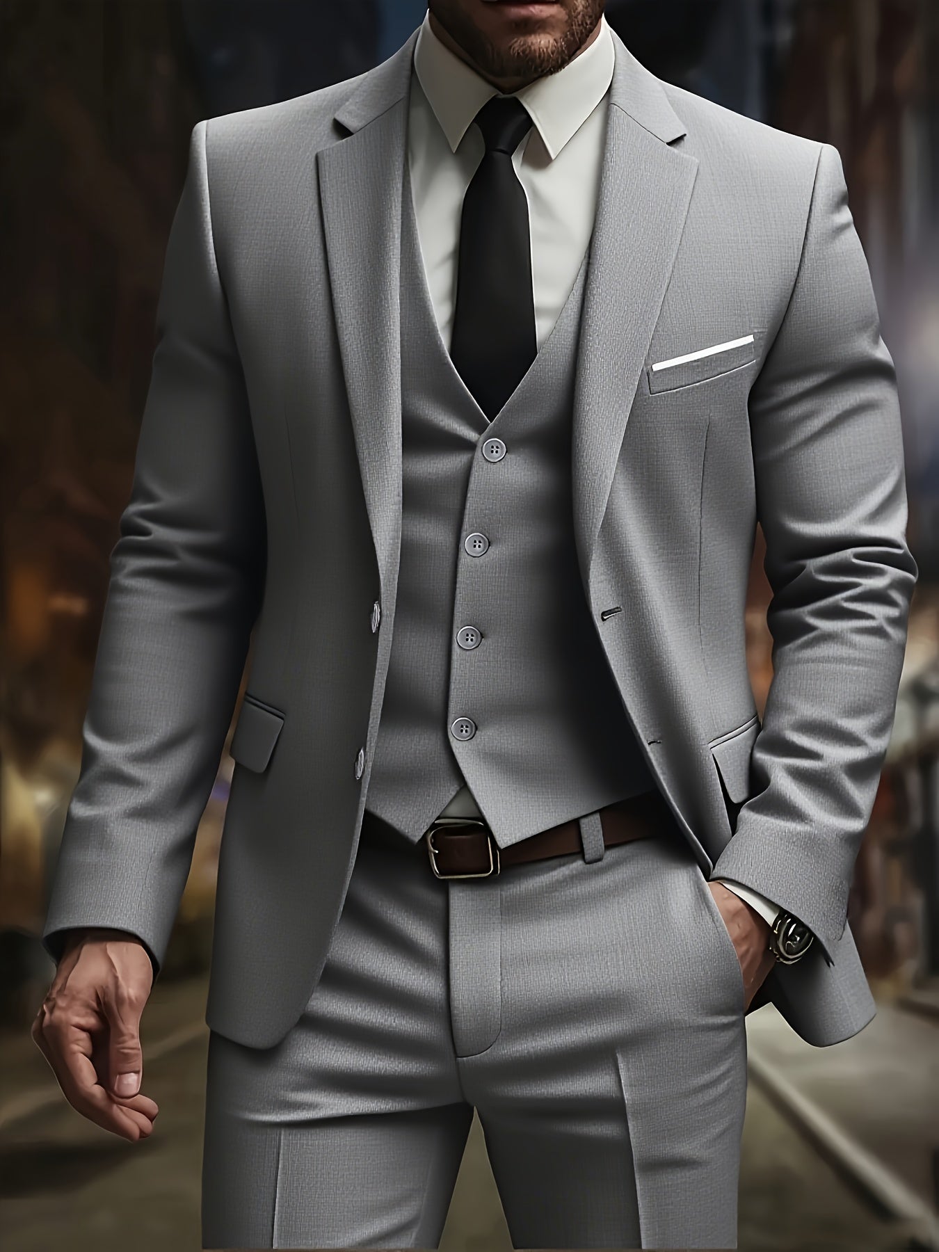 Elevate your professional wardrobe with our Men's 2pcs Suit Set, featuring a chic blazer and tailored trousers designed for optimal comfort and style. Crafted from high-quality polyester, this suit is perfect for work and all-season wear- a must-have for the modern man.