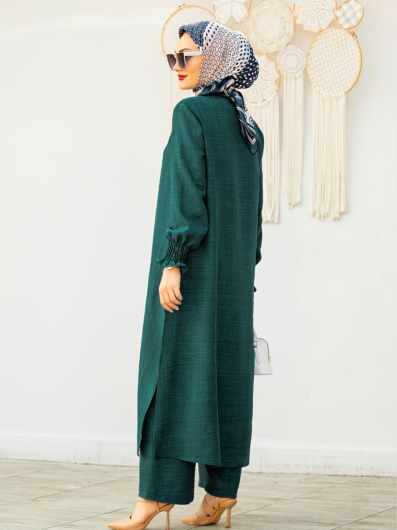 Casual Long Waistband Pants Set - 100% Polyester for All Seasons